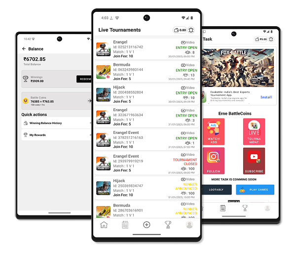 FoxBattle is the ultimate esports tournament platform where gamers can create and participate in tournaments to win real money. Players can set entry fees for their tournaments, and winners receive cash rewards. The tournament host also earns ₹10 per completed tournament. To ensure fairness, FoxBattle uses AI-based result verification, requiring players to upload match screenshots for automated processing. The app also features high-quality 1080p 60fps live streaming, secure local storage for screenshots, and advanced recording options. With seamless tournament management and real cash rewards, FoxBattle is the perfect platform for competitive gamers looking to monetize their skills.