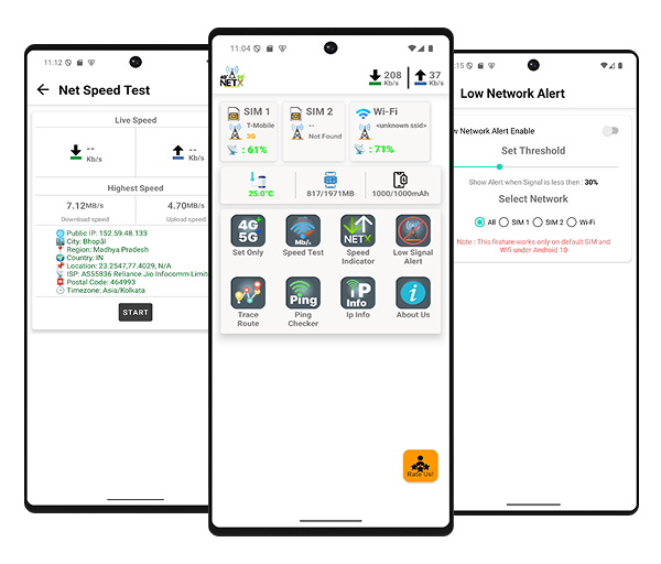 NetX allows you to lock your network to 4G/5G Only Mode, displays live network strength, and sends low network alerts. It offers speed test, ping test, IP info, traceroute, and DNS finder, ensuring a fast and stable connection at all times!